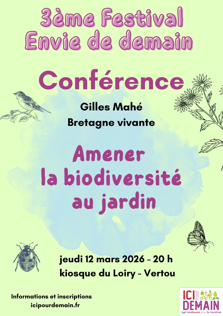 conférence La biodiversité au jardin 20 h à 22 h kiosque du Loiry Parc du Loiry VERTOU |