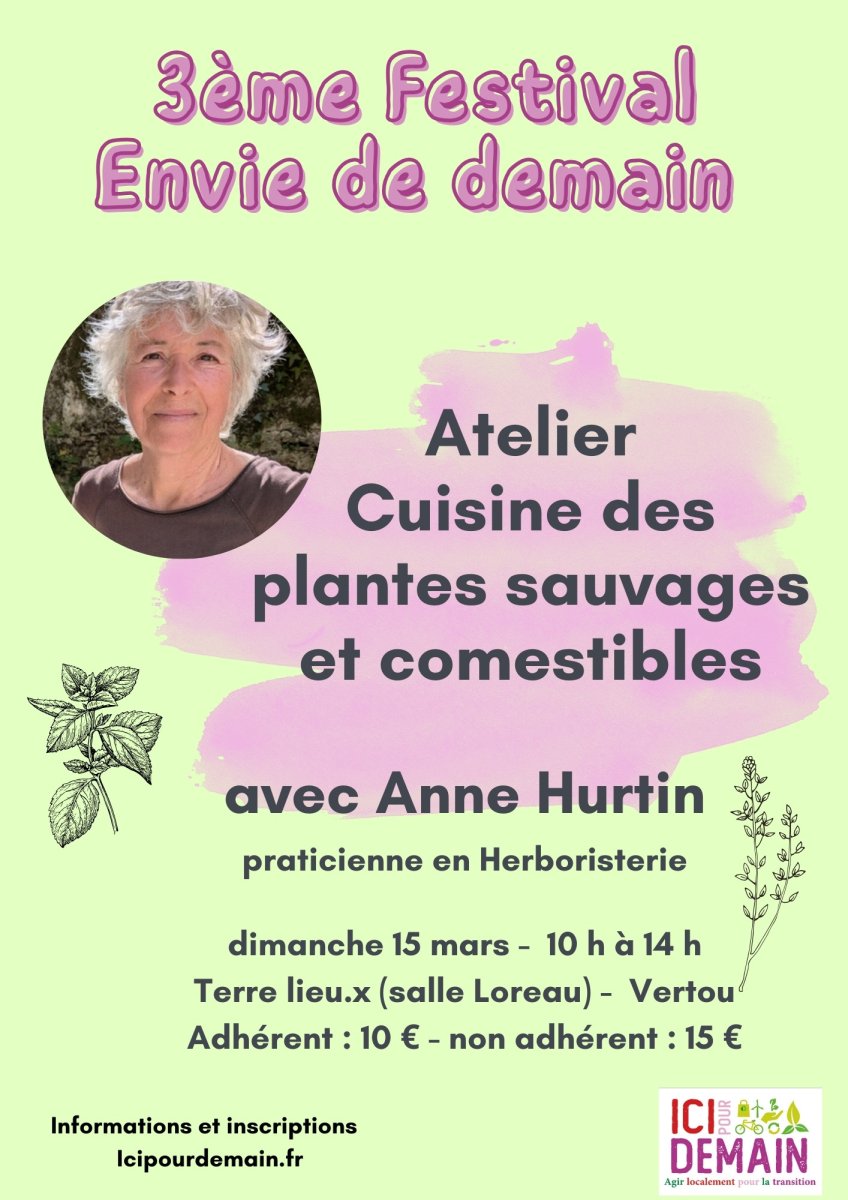 Atelier Cuisine des plantes sauvages et comestibles 10 h à 14 h Terre Lieu.x Salle Loreau |