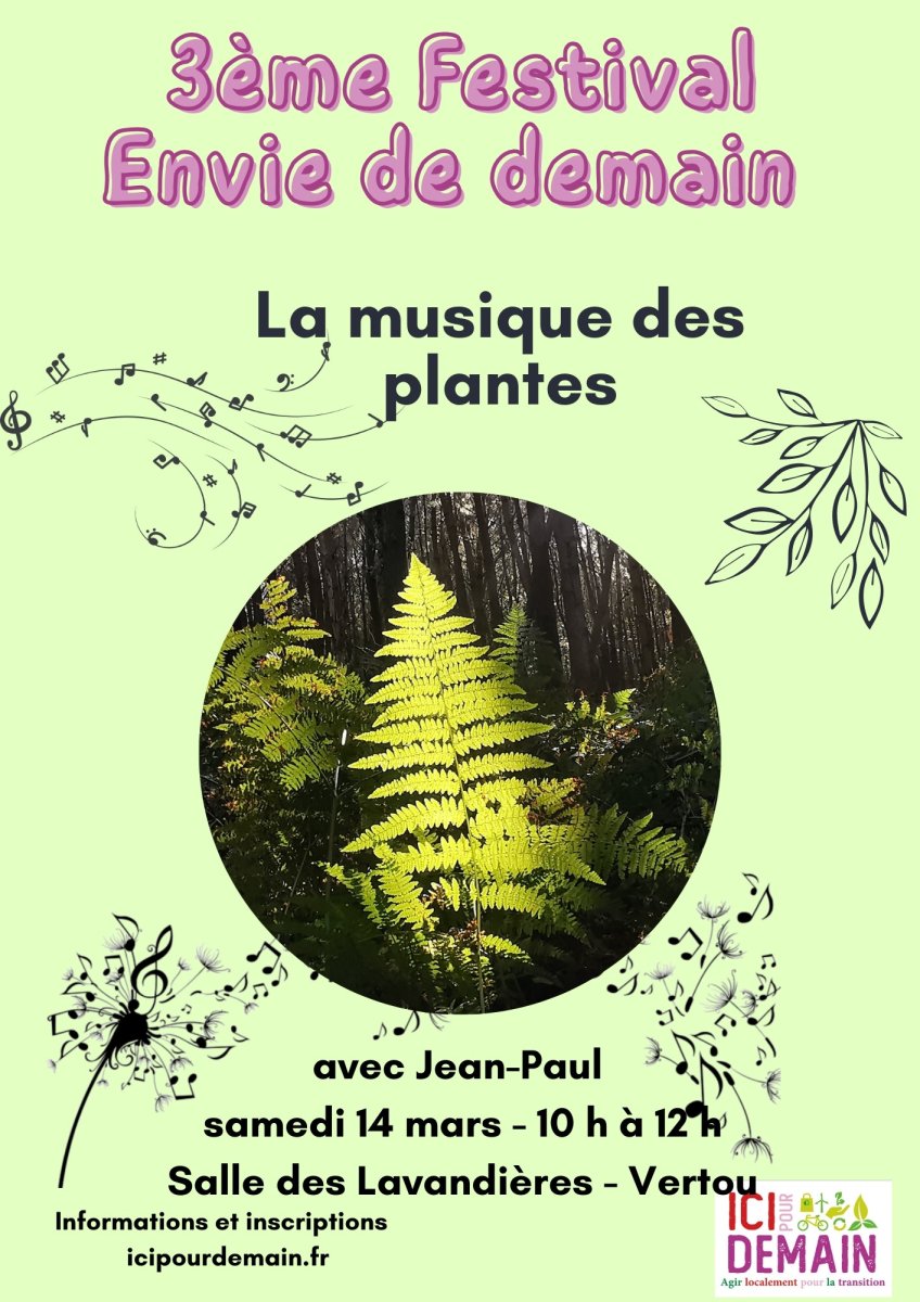 Atelier La musique des plantes 10 h à 12 h Salle des lavandières Parc du Loiry VERTOU