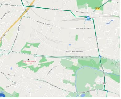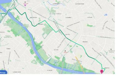 Voici la carte du circuit emprunté par des chemins de traverse et le plus possible à l'écart de la circulation. Les cartes et illustrations sont issues de Géovélo.