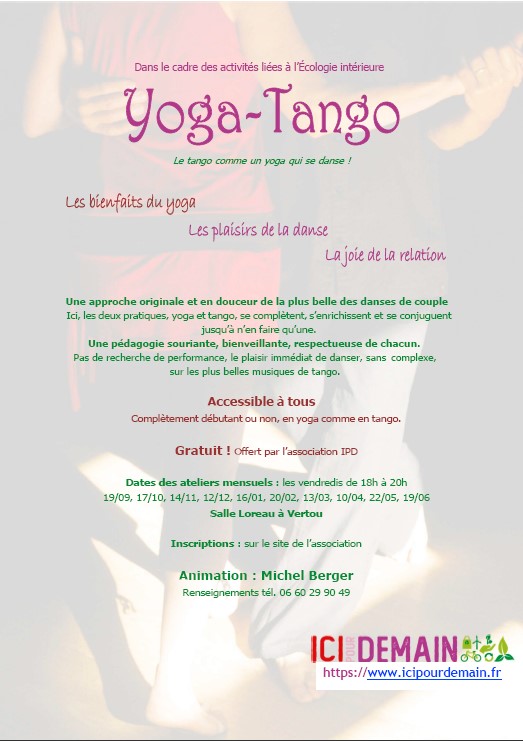 Les ateliers sont gratuits, offerts par l’association Ici pour Demain à ses adhérents (1ère séance « découverte » ouverte aux non-adhérents).